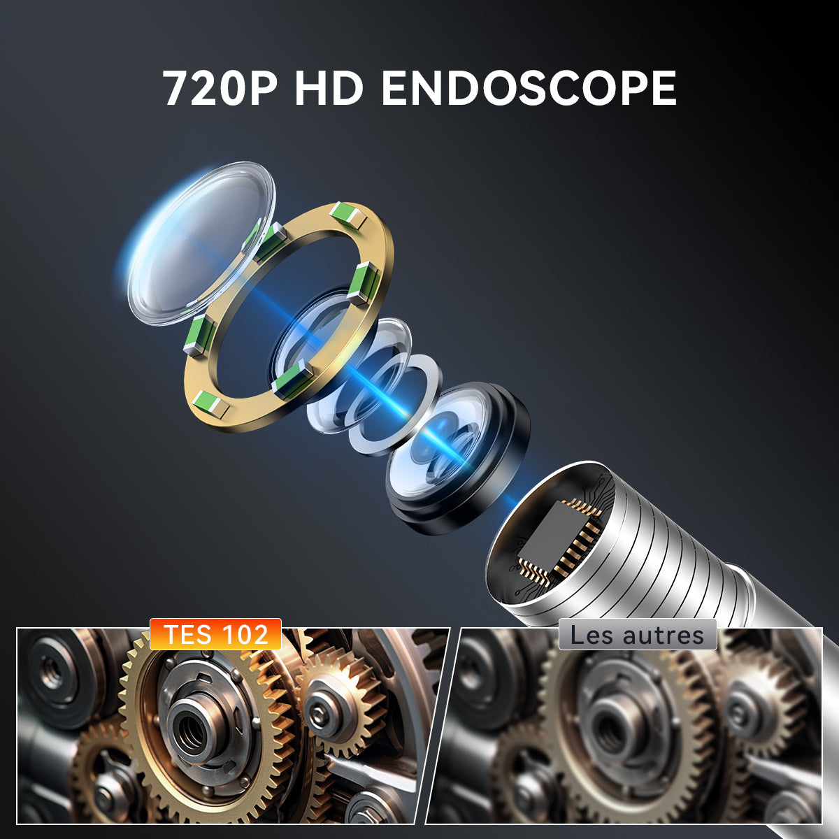 • 6 LED réglables, optimisent la visibilité dans les cavités sombres (0.8-4" / 2-10 cm).