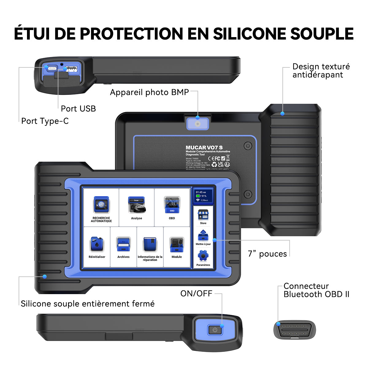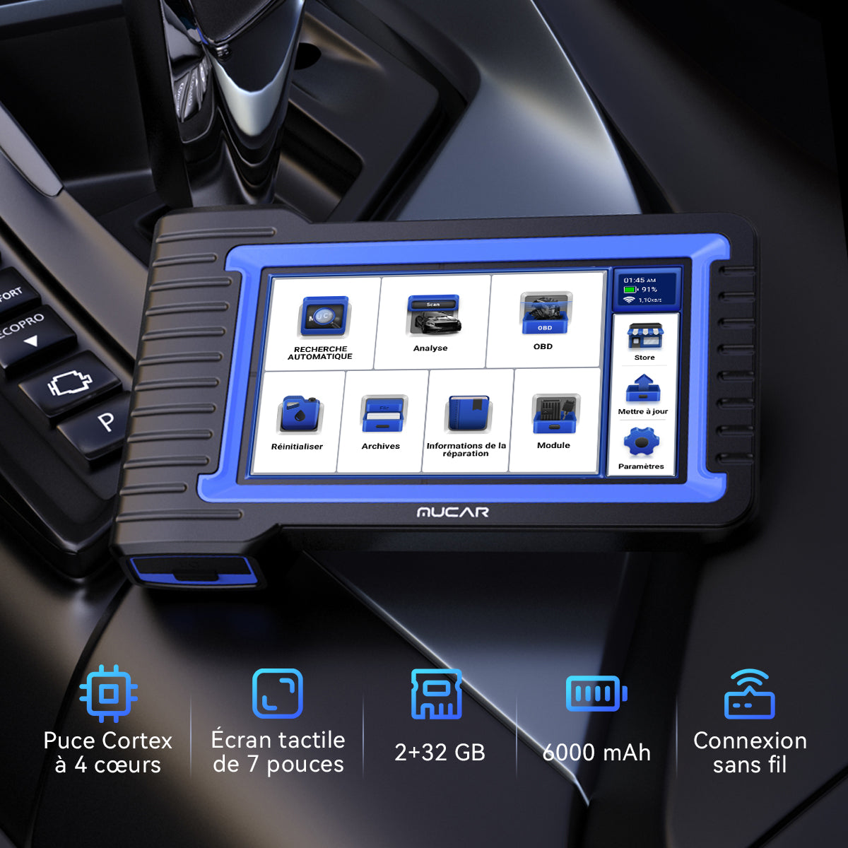 Maximisez votre efficacité et votre rentabilité grâce à cet équipement de diagnostic haut de gamme, qui ne cesse de se développer. MUCAR VO7 S est équipé de plus de 28 services de maintenance à valeur ajoutée : Purge ABS, réinitialisation AdBlue, éclairage avant adaptatif, réinitialisation air/carburant, calibrage du niveau d'air, réinitialisation Airbag, adaptation de la batterie, réinitialisation des freins, purge du liquide de refroidissement, apprentissage adaptatif du capteur de position du vilebrequin, régénération DPF, adaptation EGR, réapprentissage de l'accélérateur électrique, réapprentissage de la boîte de vitesses, réinitialisation de l'antidémarrage, codage des injecteurs, changement de langue, réinitialisation du capteur NOx, compteur ODO, réinitialisation de l'entretien de l'huile, calibrage de l'occupation des sièges, réinitialisation de l'angle de braquage, réinitialisation Stop/Start, réinitialisation du toit ouvrant, réinitialisation du TPMS, réinitialisation des pneus, mode transport, calibrage des fenêtres.