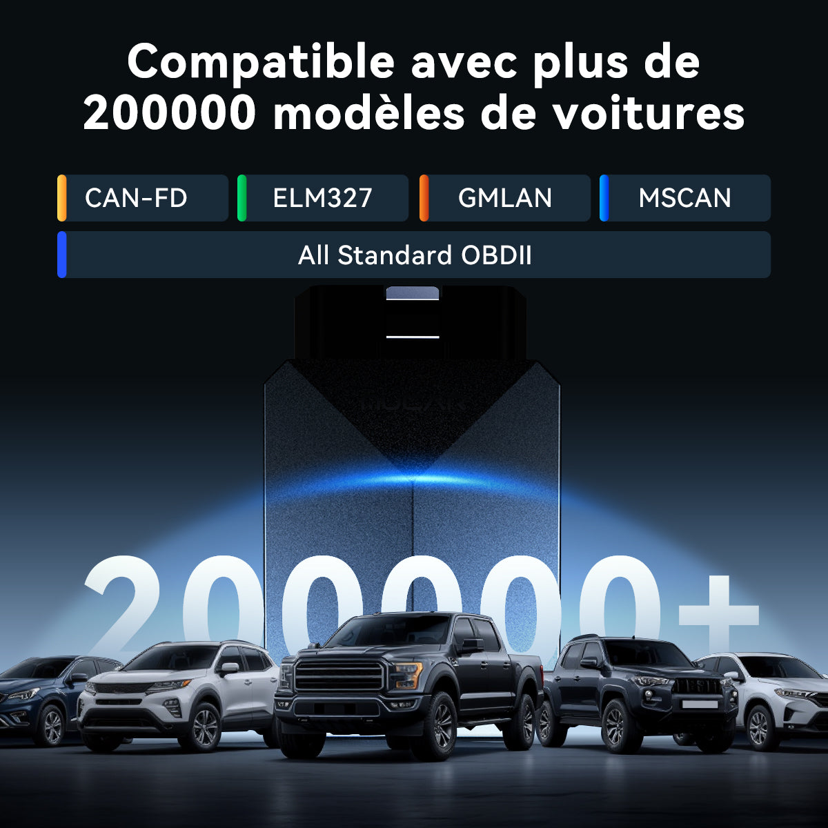 • Protocoles CAN-FD + ELM327 pour une large compatibilité.