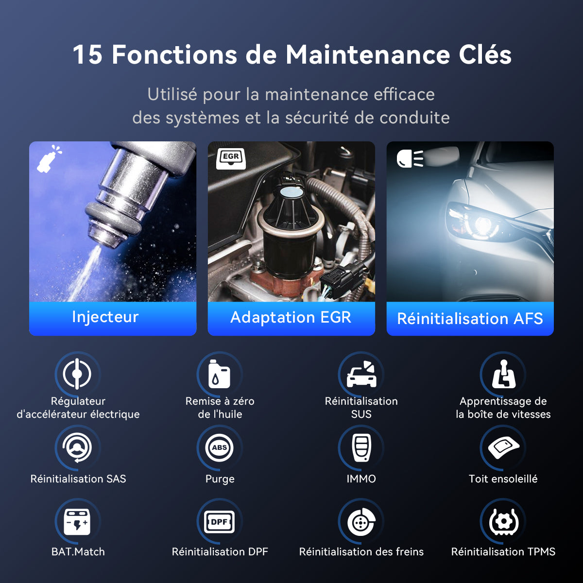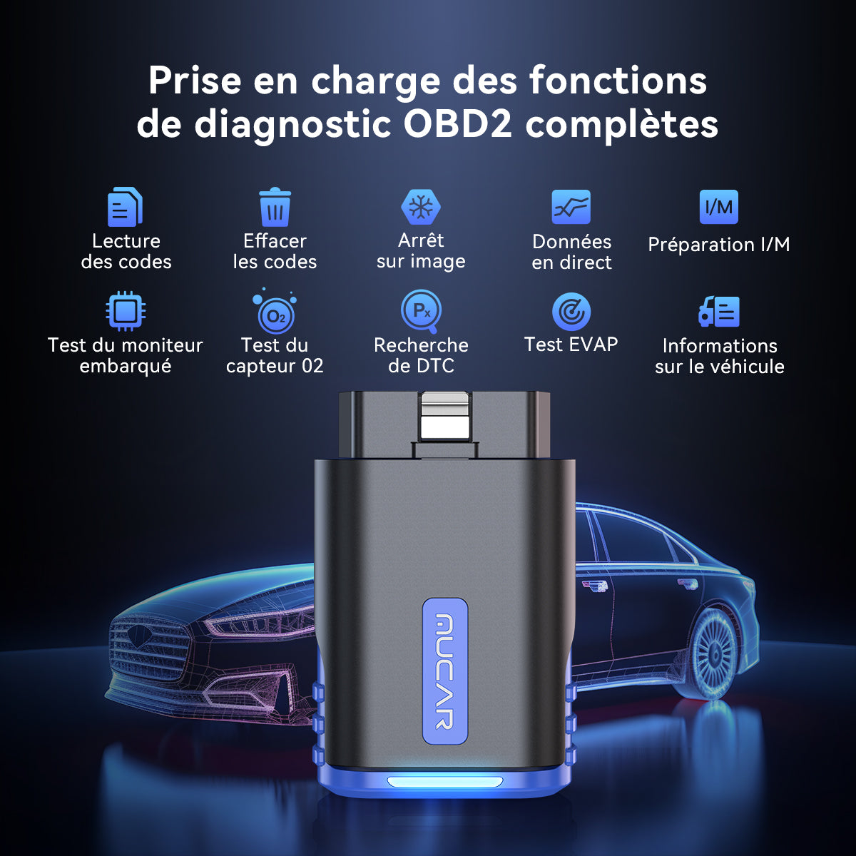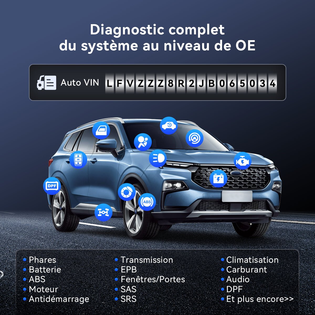 • Fonctions complètes de diagnostic OBD2 (gratuit à vie)