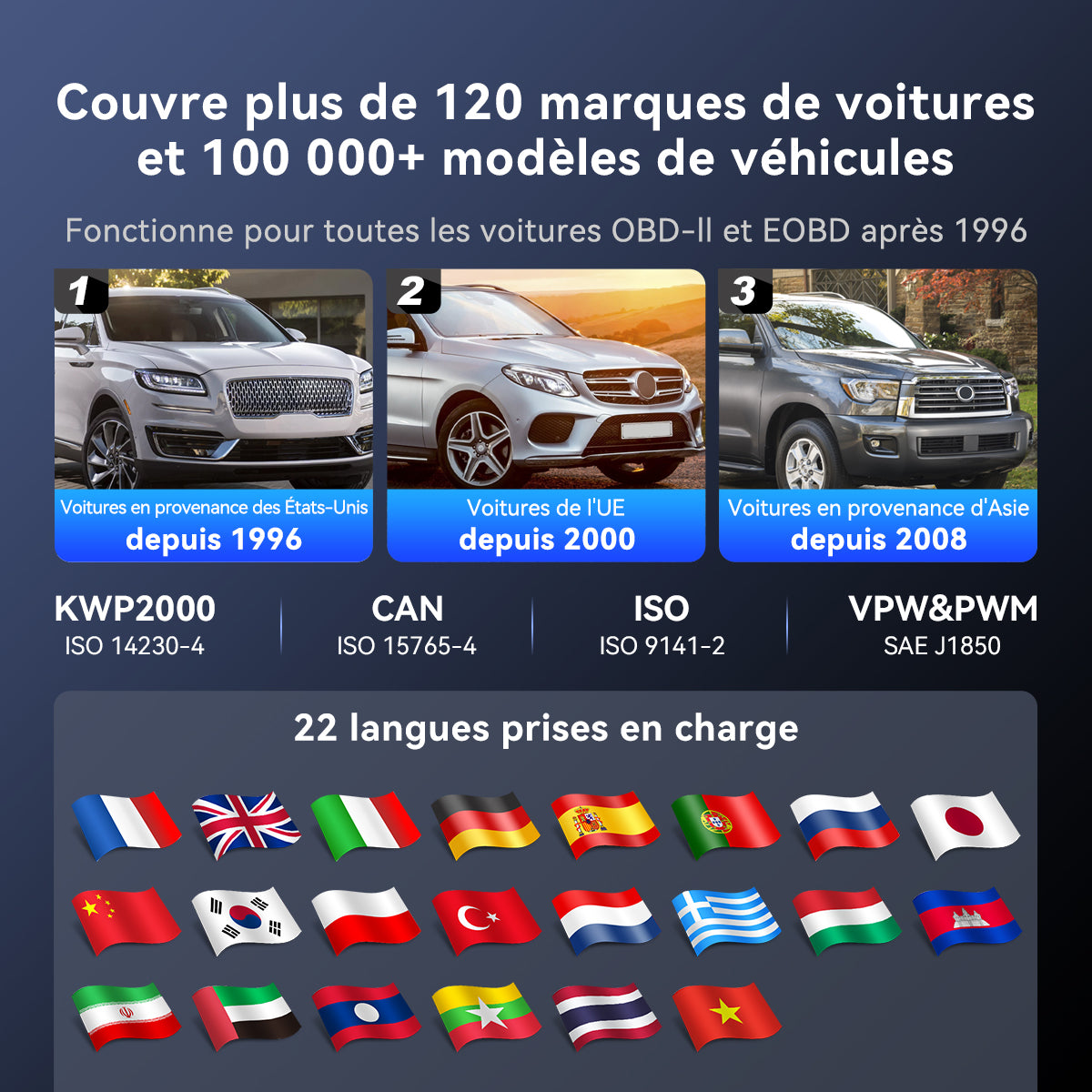 • Prend en charge 98 % des modèles de voitures (couvre 134 marques, et plus)