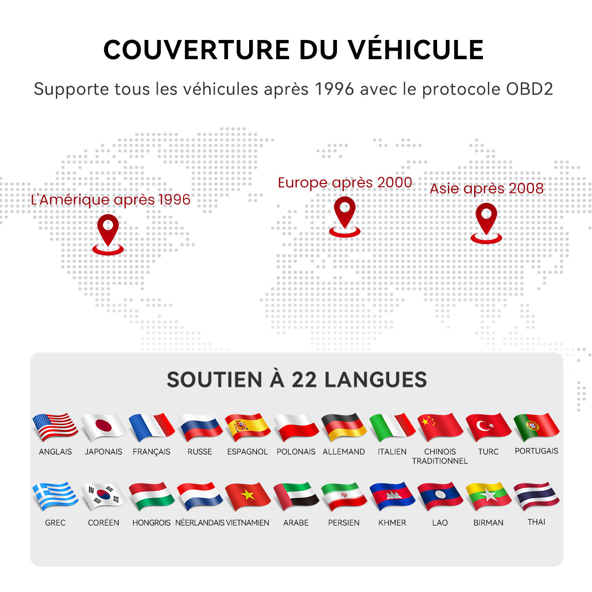 • Compatible avec 98% des modèles véhicules (Europe, Amérique, Asie)